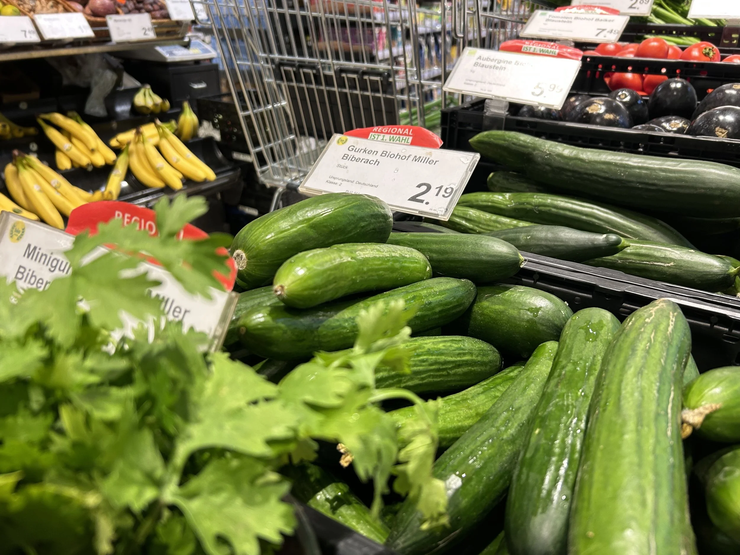 Gurken, Frühlingszwiebeln, Stangensellerie und Koriander vom Biohof Miller