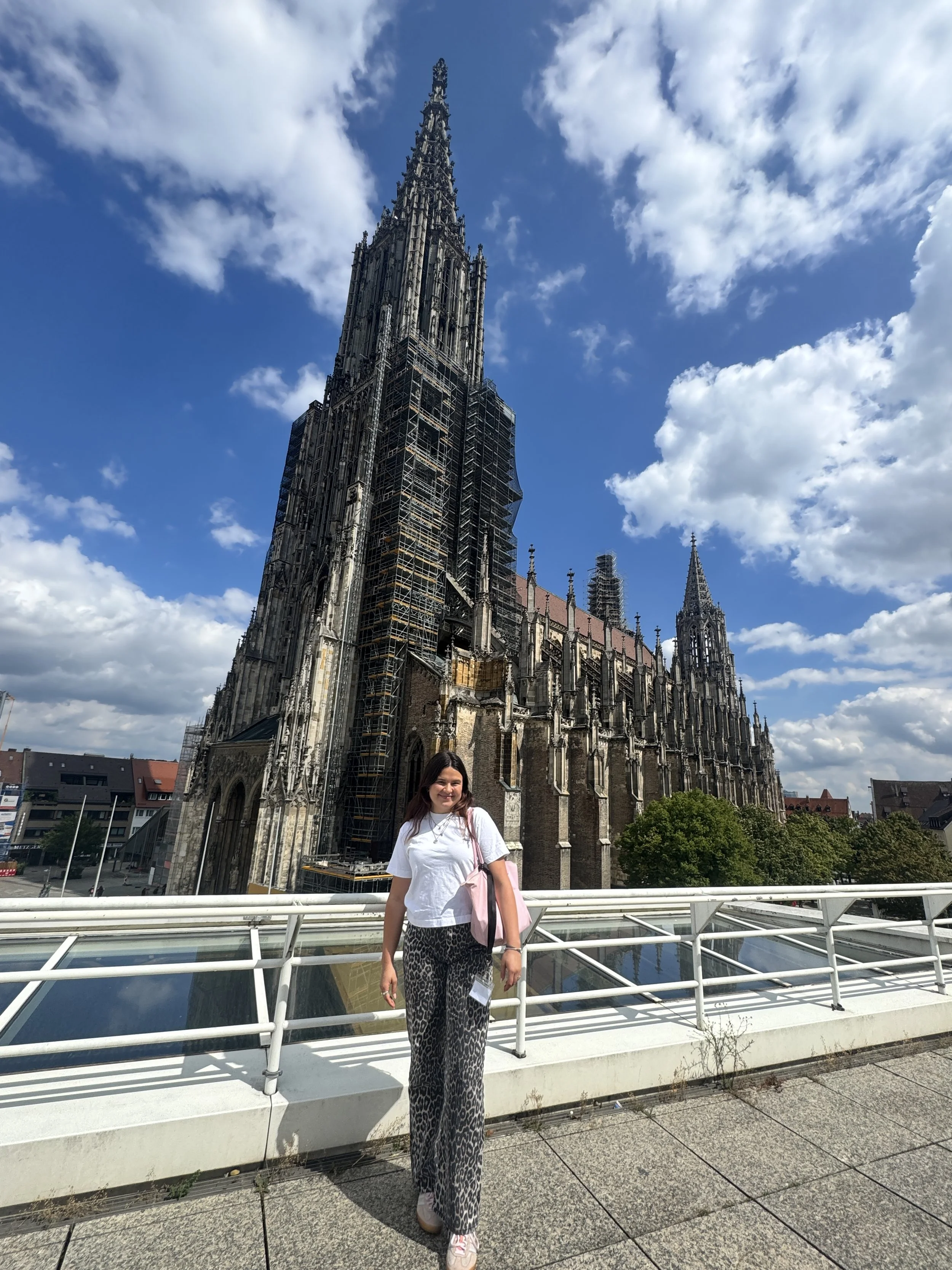 Leila ist Ulms jüngste Stadtführerin und zeigt seit 2023 Gruppen ihre Lieblings-/Heimatstadt. “Man sieht mich meistens mit meiner knallrosa Tasche durch die Stadt laufen und auch in meiner Freizeit droppe ich gerne Fakten über Ulm, sodass inzwischen alle in meinem Umfeld zumindest die genaue Höhe vom Münster (161,53!m) wissen.”